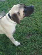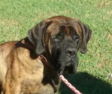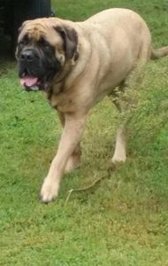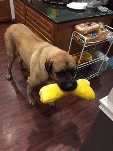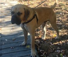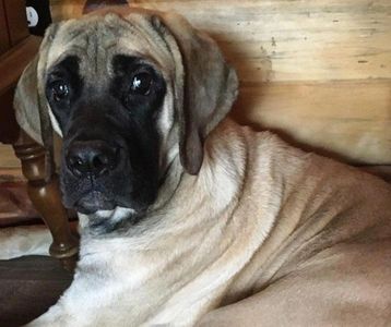 Bailey's original daddy was a soldier who deployed to a place where mastiffs were not welcome. Bailey's foster parents fell in love and couldn't bear to let him go, so now he's spoiled rotten along with his fur brother and sister.